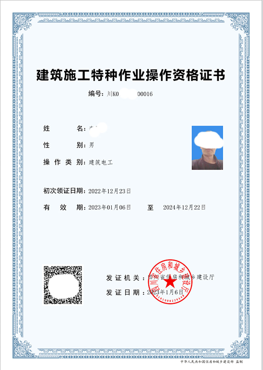《建筑施工特種作業操作資格證書》