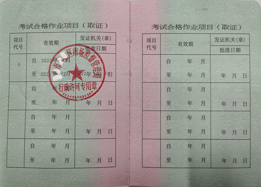 特種安全設(shè)備管理A,(電梯管理,鍋爐壓力容器管道管理,起重機(jī)械管理,場(chǎng)(廠)內(nèi)專(zhuān)用機(jī)動(dòng)車(chē)輛管理,)起重機(jī)指揮Q1,起重司機(jī)(限門(mén)座式起重機(jī))Q2,起重司機(jī)(限橋式起重機(jī))Q2,起重司機(jī)(限門(mén)式起重機(jī))Q2,起重司機(jī)(限纜索式起重機(jī))Q2,起重司機(jī)(限塔式起重機(jī))Q2,起重司機(jī)(限流動(dòng)式起重機(jī))Q2,起重司機(jī)(限升降機(jī))Q2,叉車(chē)司機(jī)N1,觀光和觀光列出司機(jī)N2,電梯維修T,鍋爐壓力容器壓力管道管理,電梯管理,起重機(jī)械管理,場(chǎng)(廠)內(nèi)專(zhuān)用機(jī)動(dòng)車(chē)輛管理,工業(yè)鍋爐司爐,電站鍋爐司爐,鍋爐水處理,快開(kāi)門(mén)式壓力容器操作,移動(dòng)式壓力容器充裝,氣瓶充裝,金屬焊接操作(壓力焊PE焊),非金屬焊接操作(壓力容器焊),食品檢驗(yàn)員,化學(xué)檢驗(yàn)員,農(nóng)產(chǎn)品檢驗(yàn)員(4年一審,需要到期前3個(gè)月進(jìn)行)
