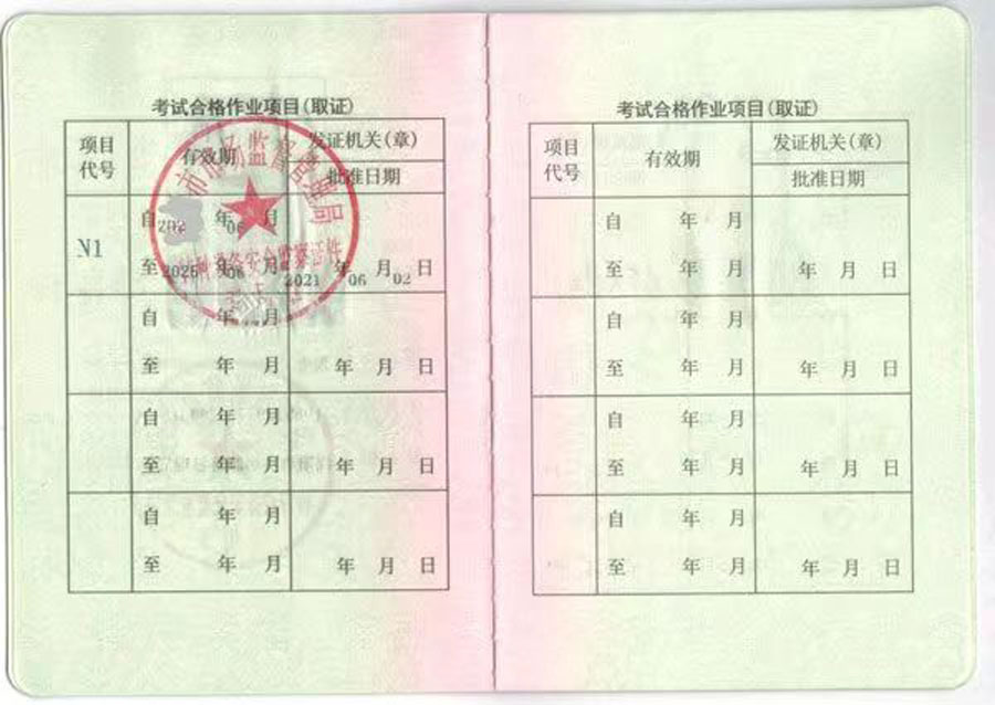 叉車(chē)證N1樣板