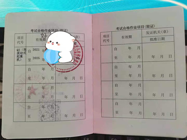 《特種設(shè)備作業(yè)證》報名:1,電梯維修T,2,起重機械管理A,3,場(廠)內(nèi)專用機動車輛管理A,4,起重機指揮Q1,5,工業(yè)鍋爐司爐G1,6,鍋爐水處理G3,7,快開門式壓力容器操作R1,8移動式壓力容器充裝R2,9,氣瓶充裝P,10,特種設(shè)備安全管理A,11,起重司機(限門座式起重機)Q2,12,起重司機(限橋式起重機)Q2,13,起重司機(限門式起重機Q2,14,起重司機(限纜索式起重機Q2,15,起重司機(限塔式起重機)Q2,16,起重司機(限流動式起重機)Q2,17,叉車司機N1,18,蓄電池觀光車司機N2,從業(yè)人員上崗證特種作業(yè)證是4年一審!